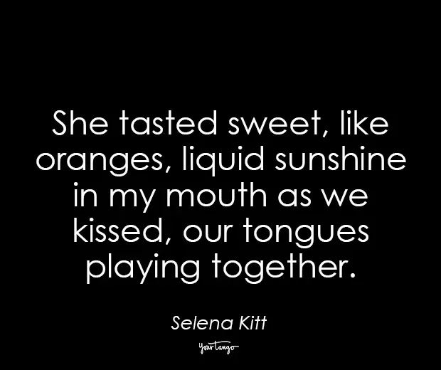 94. „Chutila sladko ako pomaranče tekuté slnečné žiarenie v mojich ústach, keď sme bozkávali naše jazyky, ktoré sa hrajú spolu.“ - Selena Kitt
