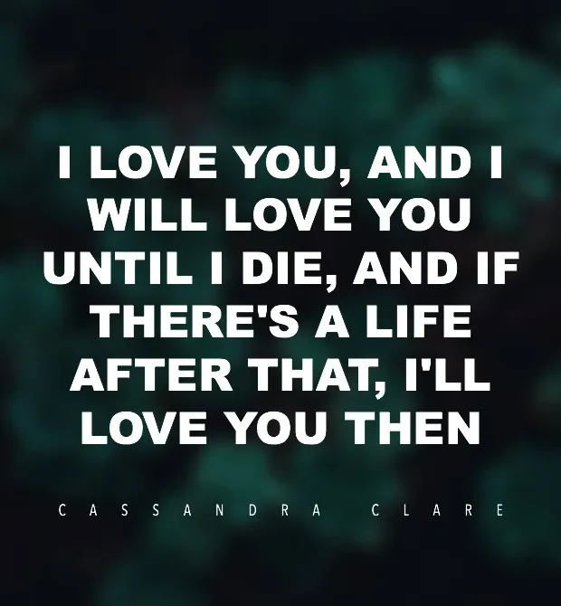 38. „Milujem ťa a budem ťa milovať, až kým nezomriem, a ak potom bude život, potom ťa budem milovať.“ - Cassandra Clare „City of Glass“
