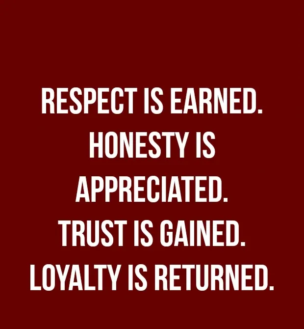 11. 'Rešpekt sa získa. Čestnosť sa oceňuje. Dôvera sa získa. Lojalita sa vracia. “